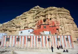 Heute krümmt sich der Weg westwärts und wir steigen steil hinauf bis wir die Jayakar über der anderen Seite einer tiefen Schlucht sehen. Wir folgen der Schlucht. Bei einer Rechtskurve auf dem Weg zu einem sehr steilen Tropfen überqueren wir dann einen Hochpass mit einem herrlichen Blick auf Samar und viele schneebedeckten Gipfeln. Nachdem wir Samar passiert haben, kommen wir auf Rangchyung Chorten, das rot bemalte Höhlenkloster und eine der heiligsten Stätten der Mustangregion. Der Name übersetzt als „die Chorten, die sich gebildet haben“, wegen der ungewöhnlichen Entwicklung der Stalagmiten im Inneren. Im Laufe der Jahre haben sich Gebetsfahnen und Tonstatuen von Pilgern in den Chorten angesammelt. Der letzte Weg zu Syangboche kann sich länger anfühlen, als er tatsächlich ist, wegen der Tatsache, dass dieser Abschnitt des Treks einen nahezu konstanter Aufstieg ohne Ziel in Sicht ist. Die Kälte der höheren Höhen ist mit uns, wenn wir endlich in das kleine Dorf kommen.