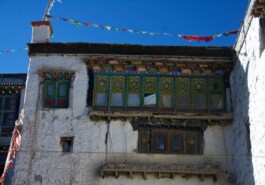 Der heutige Trek startet offensichtlich – innerhalb der ersten fünfzehn Minuten zu Fuß, begegnen wird den ersten von drei (!) Hochpässe, die wir heute passieren müssen. Nachdem wir Yanda La durchquert haben, passieren wir eine unverwechselbare rote Chorte, die mit einem Oktett von glücklichen buddhistischen Symbolen verziert ist. Zwei rote Gompas markieren den Eingang zum weitläufigen, blühenden Dorf Ghelung. Die braunen Hügel, die über das Dorf hinausrafen, gehören zum Nyi La-Pass, gefolgt durch den Ghami-La-Pass. Wir überqueren ein anderes breites Tal und kommen dann in Ghami, einem der größten Dörfer im Mustang an.