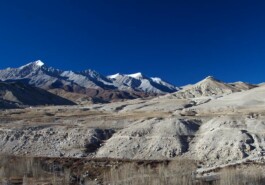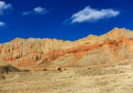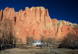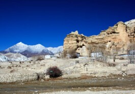 Heute stehen wir wieder früh auf! Der Upper Mustang unterscheidet sich von anderen Himalaja-Treks mit einem hohen Wind, der dazu neigt, im Laufe des Tages stärker zu werden. Infolgedessen nutzen wir den milden Morgen so gut wie es geht aus. Außerdem bekommen wir die Gelegenheit, die Sonne über Nilgiri zu sehen. Wir fangen an, am Ufer des Flusses zu wandern, am Ende des Chuksang-Tals und überqueren den Kali Gandaki. Der Weg führt zum flachen, trockenen Land mit den roten Sandsteinsäulen und den bunten Felsformationen, die für die Mustangregion charakteristisch sind. Wir passieren zuerst das Dorf Tangbe und erreichen dann Chele mit seinen atemberaubenden Himalaya-Ansichten.