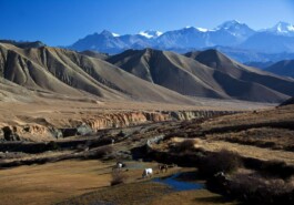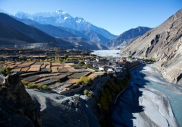 Heute ist unser letzter Tag unserer Wanderung und wir starten sehr früh um die Majestät von Dhaulagiri zu begrüßen, die von den warmen Strahlen der aufgehenden Sonne hinterleuchtet ist. Wir belohnen uns mit einem Ausflug in das Kloster Bon Punt in Lubra, bevor wir zurück nach Jomsom kehren. Nach Lubra führt der Weg zum Kali Gandaki und zum Fluss Panga – den wir heute ein paar Mal durchqueren! Da wo die beiden Flüsse sich treffen, kommen wir zum Haupt-Trekkingweg zurück zu Jomsom.